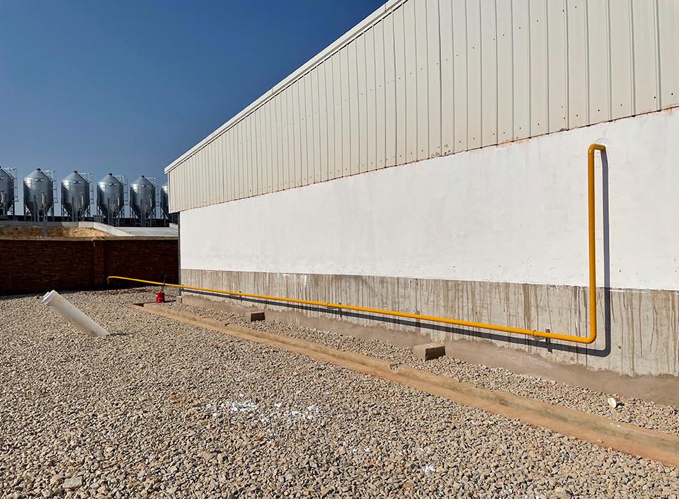 规模10000头母猪场,供气站为30立方LNG储罐,供全场猪舍采暖、洗消烘干通道、厨房餐厅等用气设备冬季满负荷生产使用约30天。